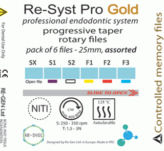 Re-Syst PRO GOLD progressive taper – Система от 6 ротационни NiTi пили с прогресивен тейпър, асорти
